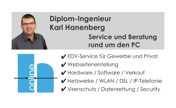 Service und Beratung rund um den PC Hauptstraße 23 Bad Bodendorf D-53489 Sinzig Tel. 0 26 42 / 9 93 94 60 Fax 0 26 42 / 9 93 92 21 Mobil 01 63 / 4 30 71 23 E-Mail: info@hanenberg-online.de www.hanenberg-online.de Hardware & Software IT-Service · Netzwerkbetreuung DSL · Wireless LAN […]