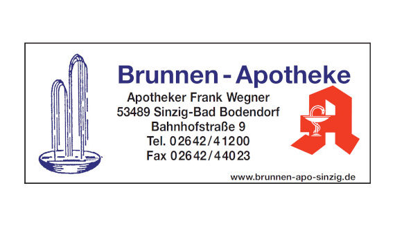 Apotheker Frank Wegner Bahnhofstr. 9 Bad Bodendorf D-53489 SinzigTel. 0 26 42 / 4 12 00 Fax 0 26 42 / 4 40 23 www.brunnen-apo-sinzig.de info@brunnen-apo-sinzig.de