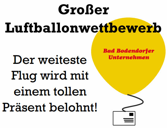 Der erste Bad Bodendorfer Freitagsmarkt 2016 bildete den Rahmen für die Ehrung der Siegerin des Ballonwettbewerbs, den der Gewerbeverein im Rahmen des Dorffestes 2015 gestartet hatte. Von ca. 500 Ballons kam die entfernteste Antwort aus Gerolstein. Absender der Karte war Eva Frenzel aus Bad Bodendorf, die somit die Gewinnerin des […]