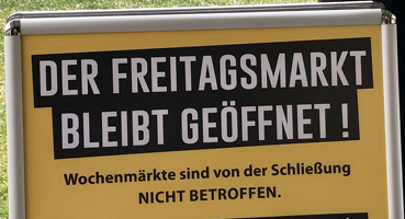 Glücklicherweise sind Wochenmärkte von den aktuellen Schließungen nicht betroffen! Die Marketender freuen sich also am Freitag auf Ihren Besuch. Wir weisen darauf hin, dass die bekannten Maßnahmen zur Minimierung einer Infektion unbedingt zu beachten sind!
