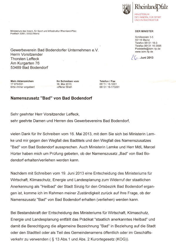 Der Gewerbeverein wird sich konstruktiv an weiteren Anhörungen der Kreisverwaltung beteiligen und als Vertretung des Faktors Wirtschaft in Bad Bodendorf alles daran setzen, eine positive Entwicklung voranzutrieben!