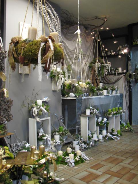 Das Ladenlokal war gefüllt mit Gestecken, Kränzen und einer Vielzahl anderer weihnachtlicher Deko-Artikel – so entstand ein Farben-Meer aus rot und weiss.
