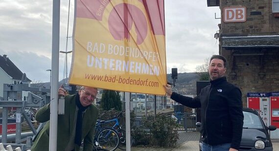Der Freitagsmarkt in Bad Bodendorf wird seit einigen Jahren auch durch Fahnen am Ortseingang und vor dem Bad Bodendorfer Bahnhofsgebäude beworben. Es war nun wieder Zeit die von Wind und Wetter zerzausten Fahnen zu ersetzen. Unlängst wurden vom 2. Vorsitzenden des Unternehmervereins, Fabian Wohlfahrt und Mitglied Hans-Otto Schade neue Fahnen […]