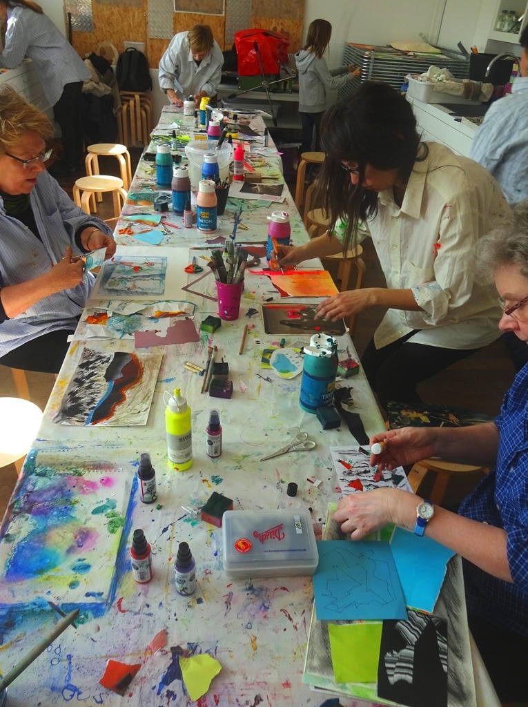 Wir werden uns wieder mit Mischtechniken: Collage in Kombination mit Malerei und Zeichnung sowie der „Decollage“ beschäftigen und Bilder im Spannungsfeld von Aufbau und Zerstörung schaffen. Eigene Fotos und Papier können gerne mitgebracht werden, es ist aber auch Material vorhanden. Es wird viel mit verschiedenen Nass- und Trocken-Techniken experimentiert, so dass jeder die Technik finden kann, die zu ihm/ihr passt. Die Ideen der Teilnehmer werden mit einbezogen und jede(r) arbeitet so, wie es ihm/ihr am besten gefällt, so dass am Ende ganz unterschiedliche individuelle Kunstwerke entstehen.