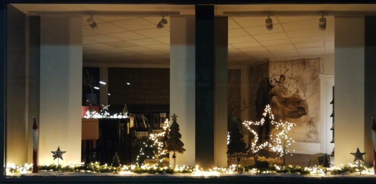 Ein paar Meter weiter finden Sie das herrlich illuminierte Schaufenster von Maler Lenzen in der Hauptstraße.